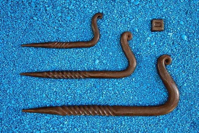We offer for sale, or commission, various hand made artefacts; hinges and hooks and bolts and so on.